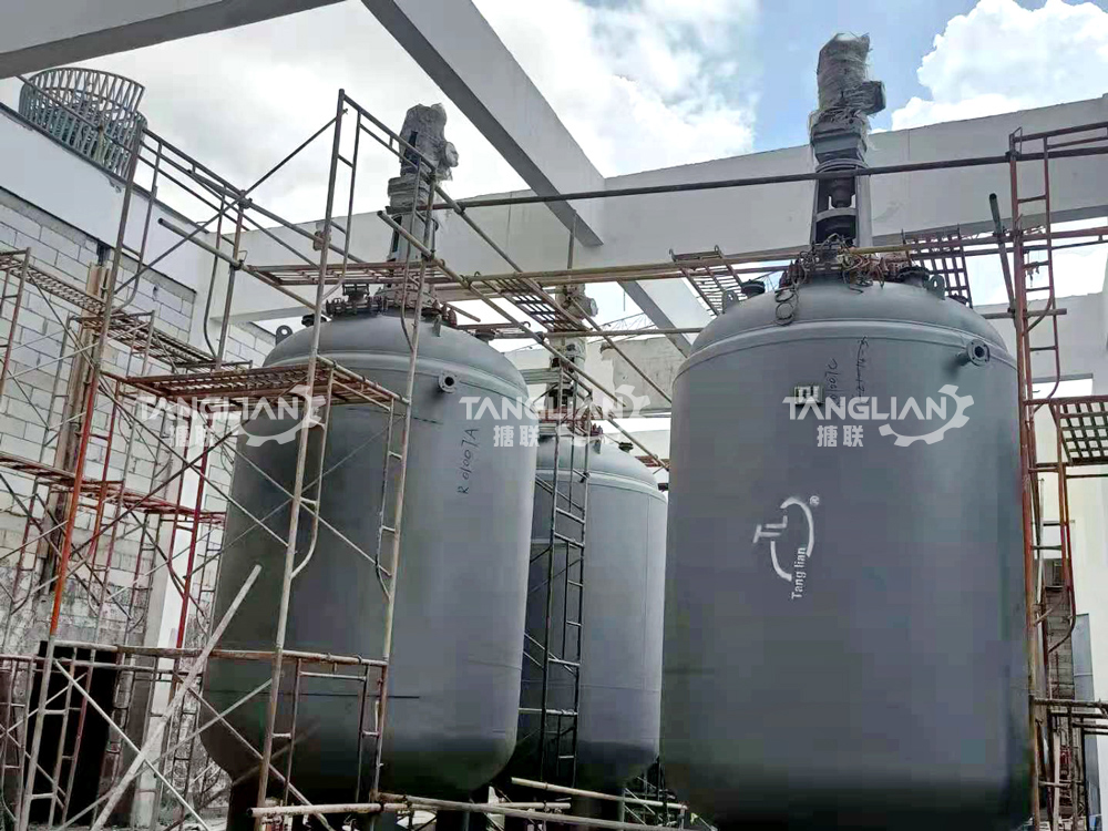 化工行业设备安装现场-搪玻璃反应釜